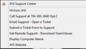 Clicking the icon will bring up a menu that has our contact information and a link to “Open Support Ticket” along with a link to download our remote support session if needed. It looks like this: